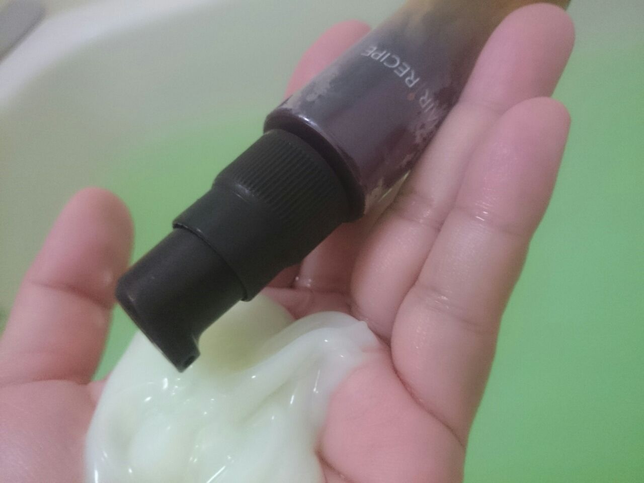トリートメントを適量手に取って、その上にオイルを3〜5プッシュ。