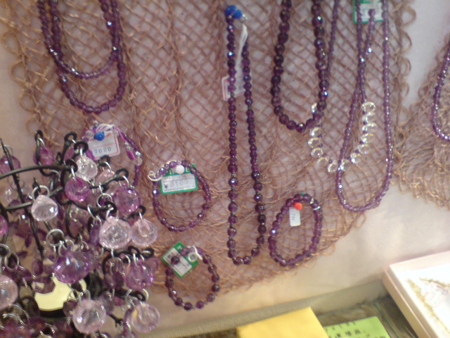 上右は、ラベンダーエレスチャルのブレスレット。
